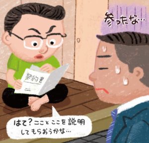 我々の日常でも、うんざりするくらい長々と書かれた契約書を見せられて、「さあ、サインしてください」と言われることがあるが、本来、これは大変、危険なこと。この点、誰かテレビ関係の人が言っていたが、「いろいろな人と契約を交わしたが、その場で、じっくり、契約書を熟読したのは元プロ野球監督、広岡達朗氏だけ」と。さすが。